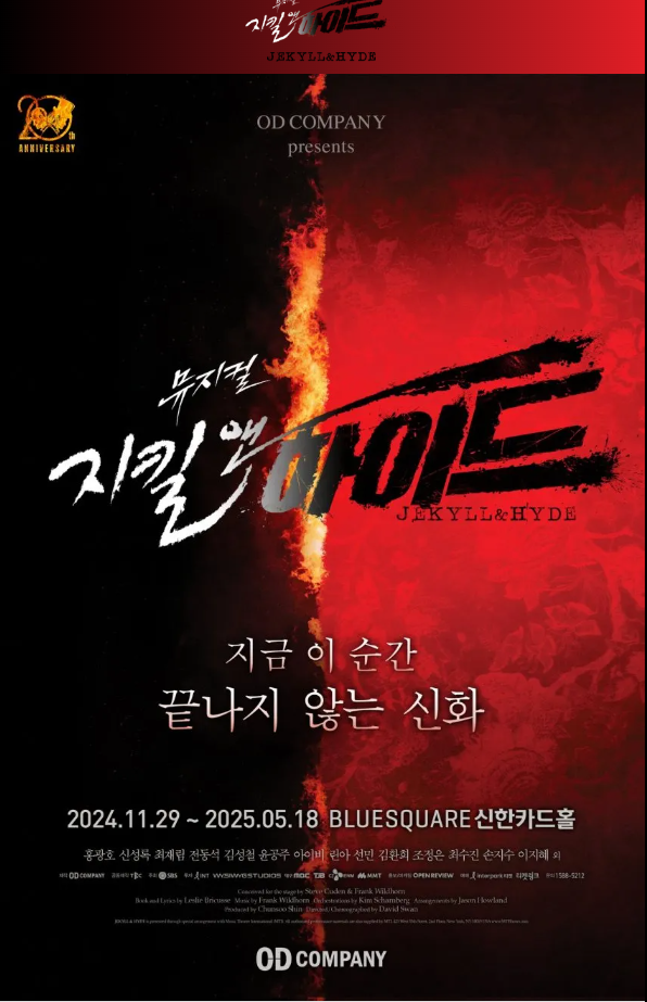 뮤지컬 '지킬앤하이드'가 한국 초연 20주년을 맞아 10번째 공연을 올립니다. 이번 공연은 2023년 12월 4일부터 2025년 5월 18일까지 서울 용산구 블루스퀘어 신한카드홀에서 진행됩니다. 프리뷰 공연은 11월 29일부터 12월 3일까지 예정되어 있으며, 홍광호, 전동석, 김성철 등 많은 유명 배우들이 출연합니다.