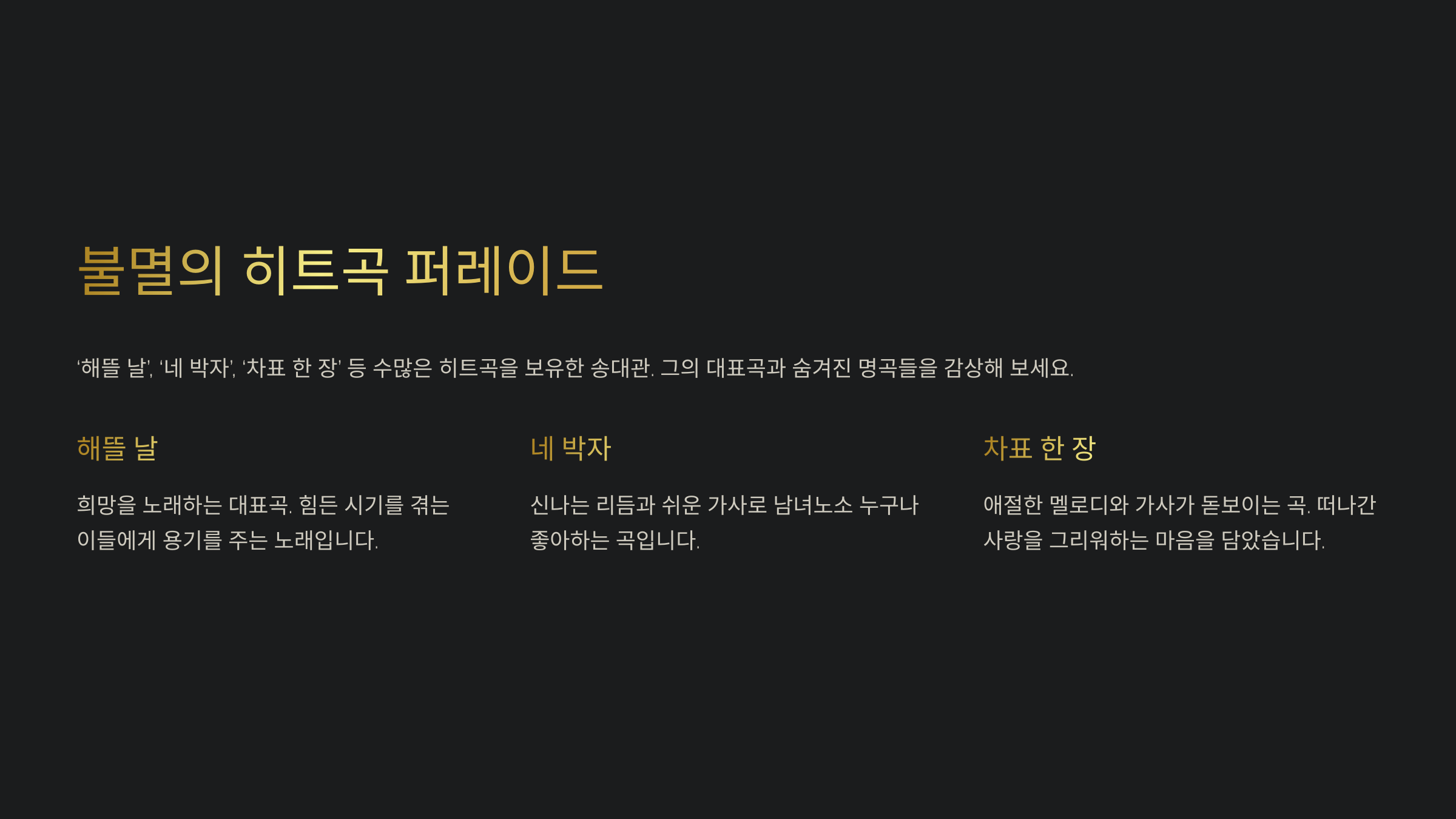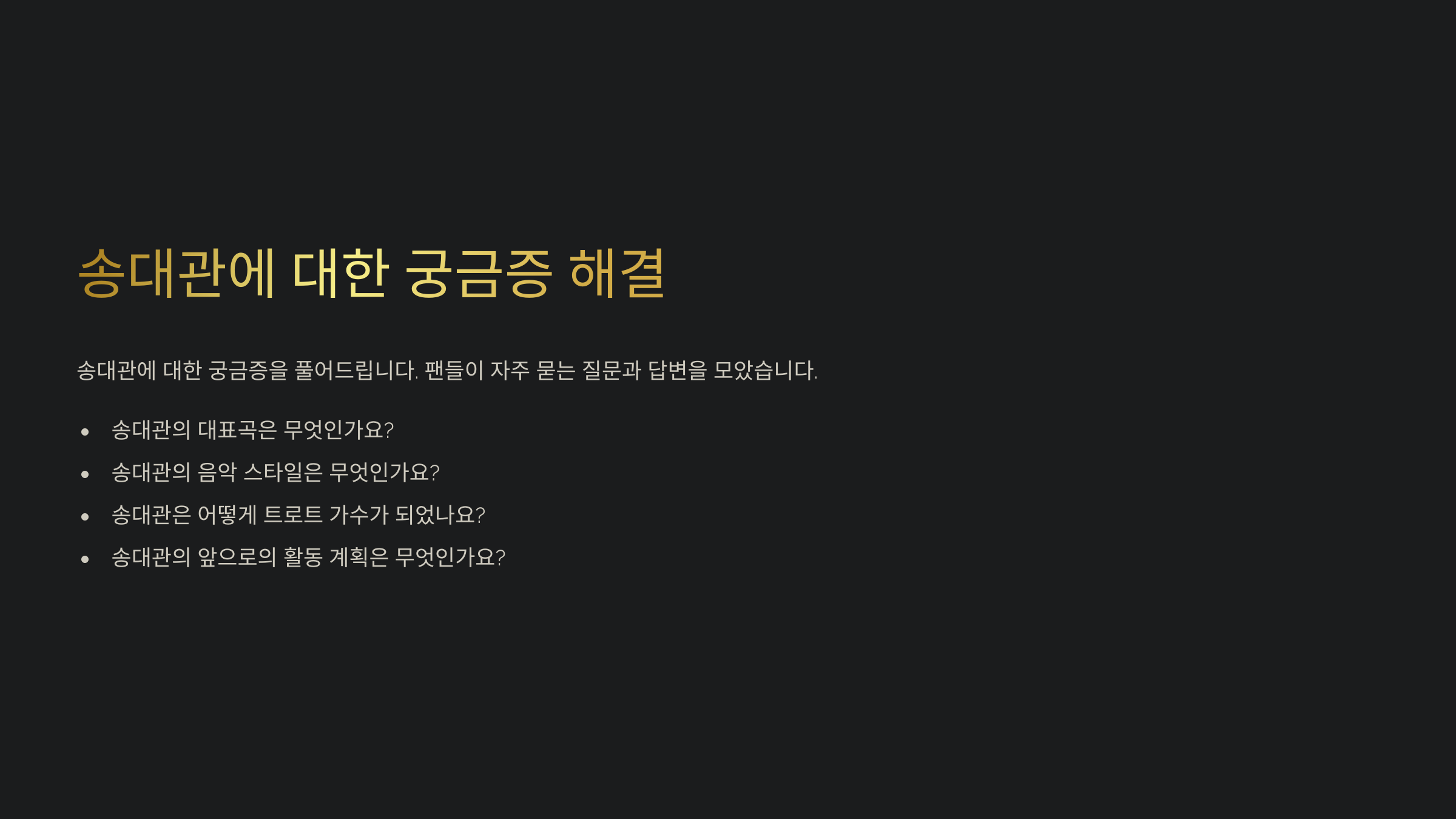 다음 섹션에서는 송대관 노래의 가사와 음악 스타일에 대해 알아볼게요! 🎤