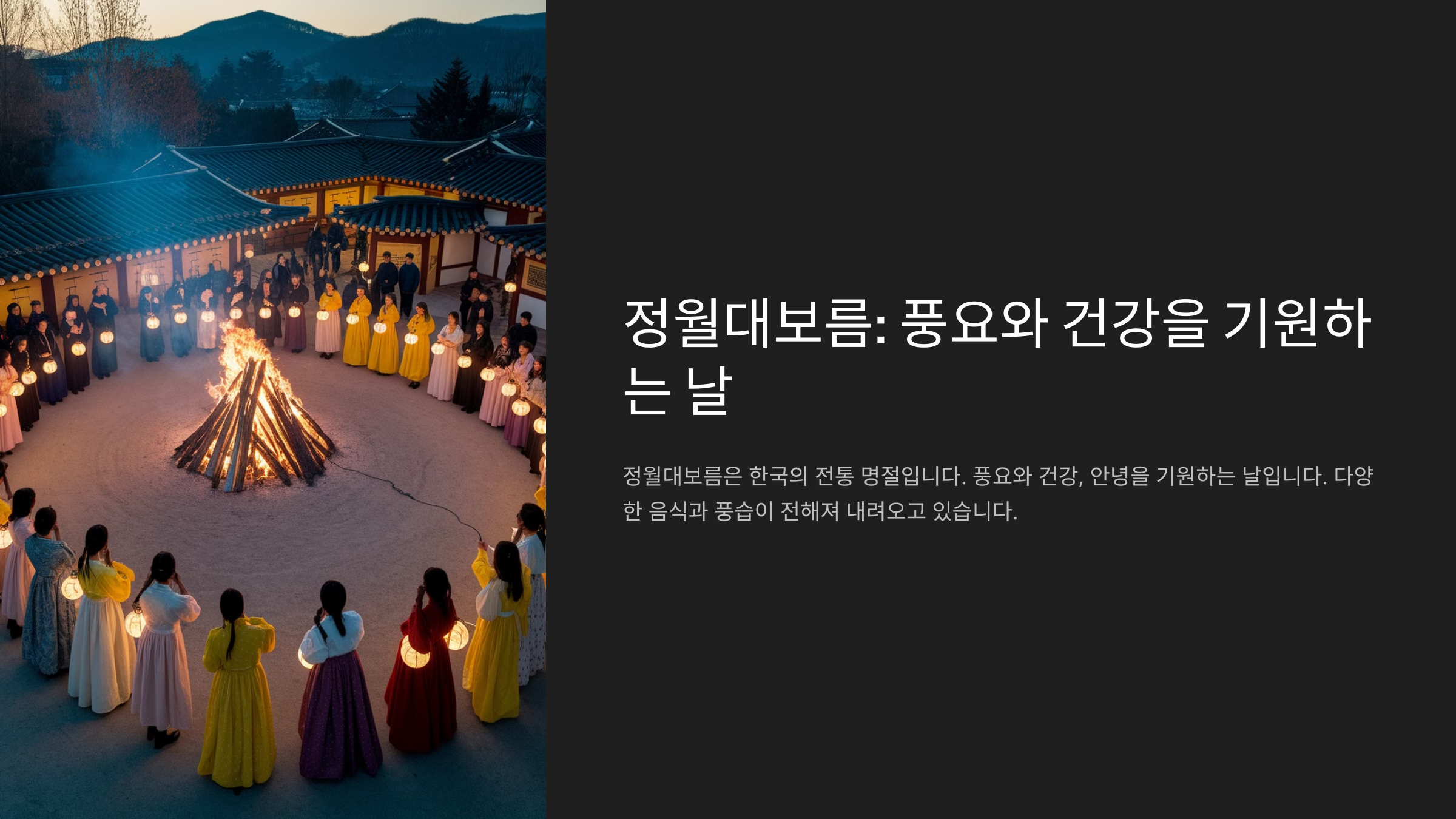 정월대보름은 음력 1월 15일로, 새해 첫 보름달이 뜨는 날이에요. 예로부터 한국에서는 이 날을 특별한 의미로 기념했어요. 농경 사회에서는 한 해의 풍년을 기원하는 날로 여겼고, 동시에 가족과 이웃이 함께 모여 음식을 나누며 정을 쌓는 날이기도 했답니다.