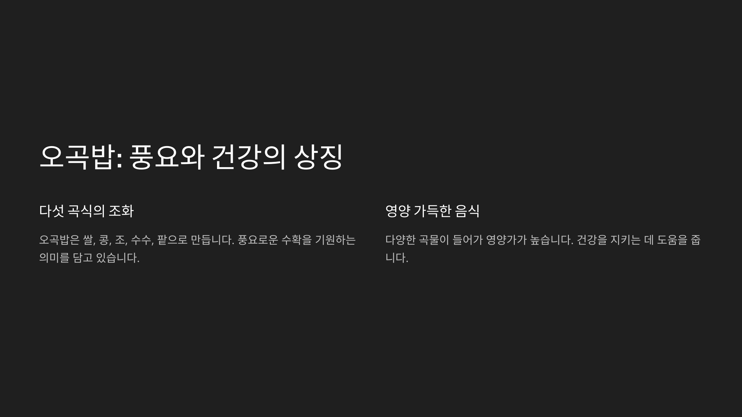 영양학적으로도 오곡밥은 균형 잡힌 영양을 제공하는 훌륭한 음식이에요. 다양한 곡물이 포함되어 있어 식이섬유와 비타민, 미네랄이 풍부하답니다. 정월대보름에 오곡밥을 먹으면 한 해 동안 건강하고 든든하게 보낼 수 있다고 해요!