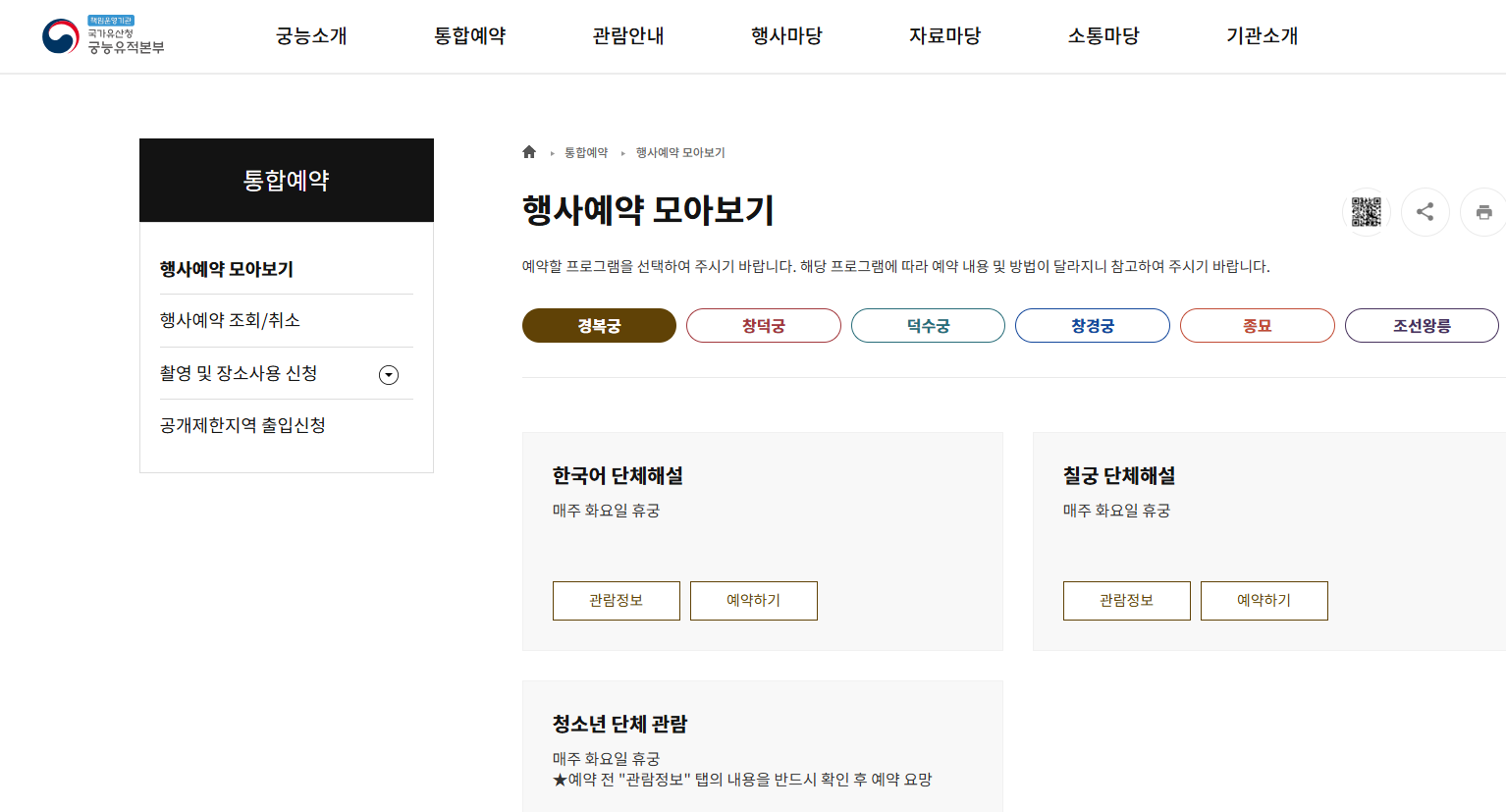 영화나 드라마에서 보던 그 궁궐을 직접 볼 수 있습니다. 아래 버튼으로 빠르게 관람예약을 할 수 있습니다.
