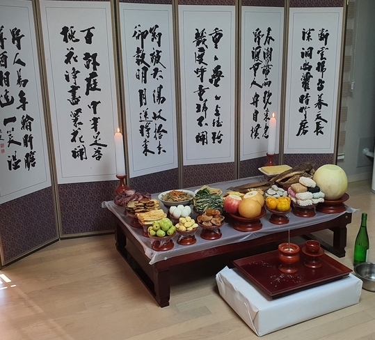 - 참신: 모든 가족들이 두 번 절을 올립니다. 참신은 가족 모두가 함께 조상님을 맞이하는 예식으로, 조상과 후손이 하나 되는 순간을 상징합니다.