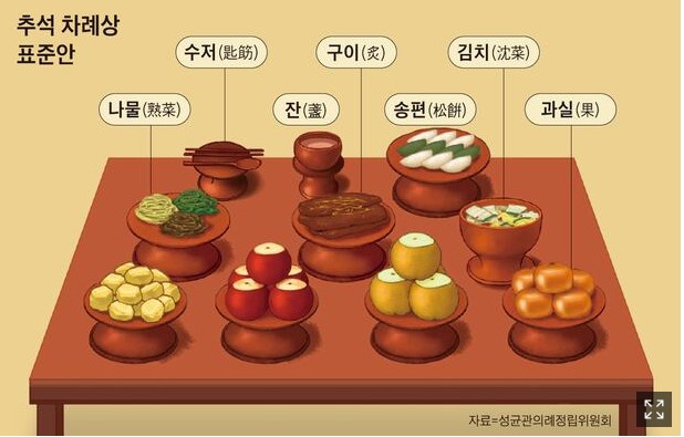 추석 차례상은 전통적인 5열의 배열법에 따라 준비하는 것이 일반적입니다.