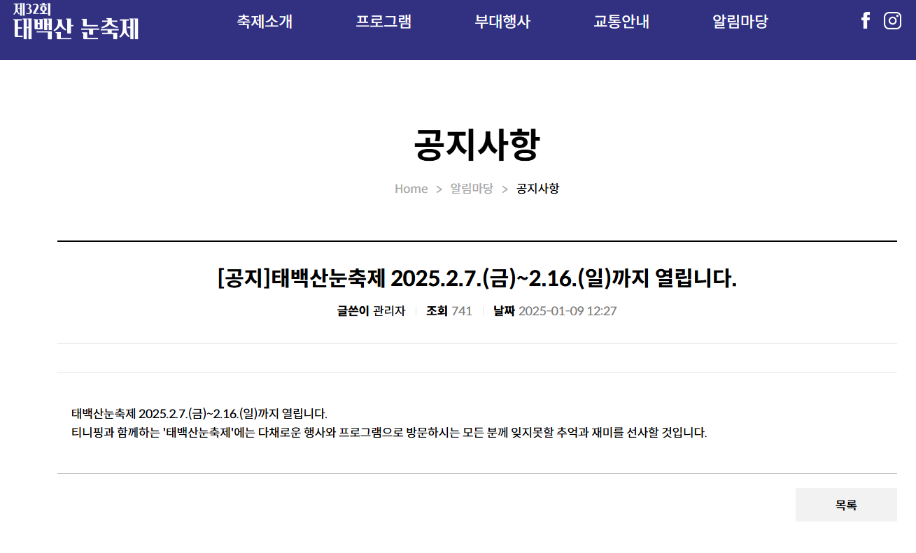 2025 태백 겨울 축제 기본 정보